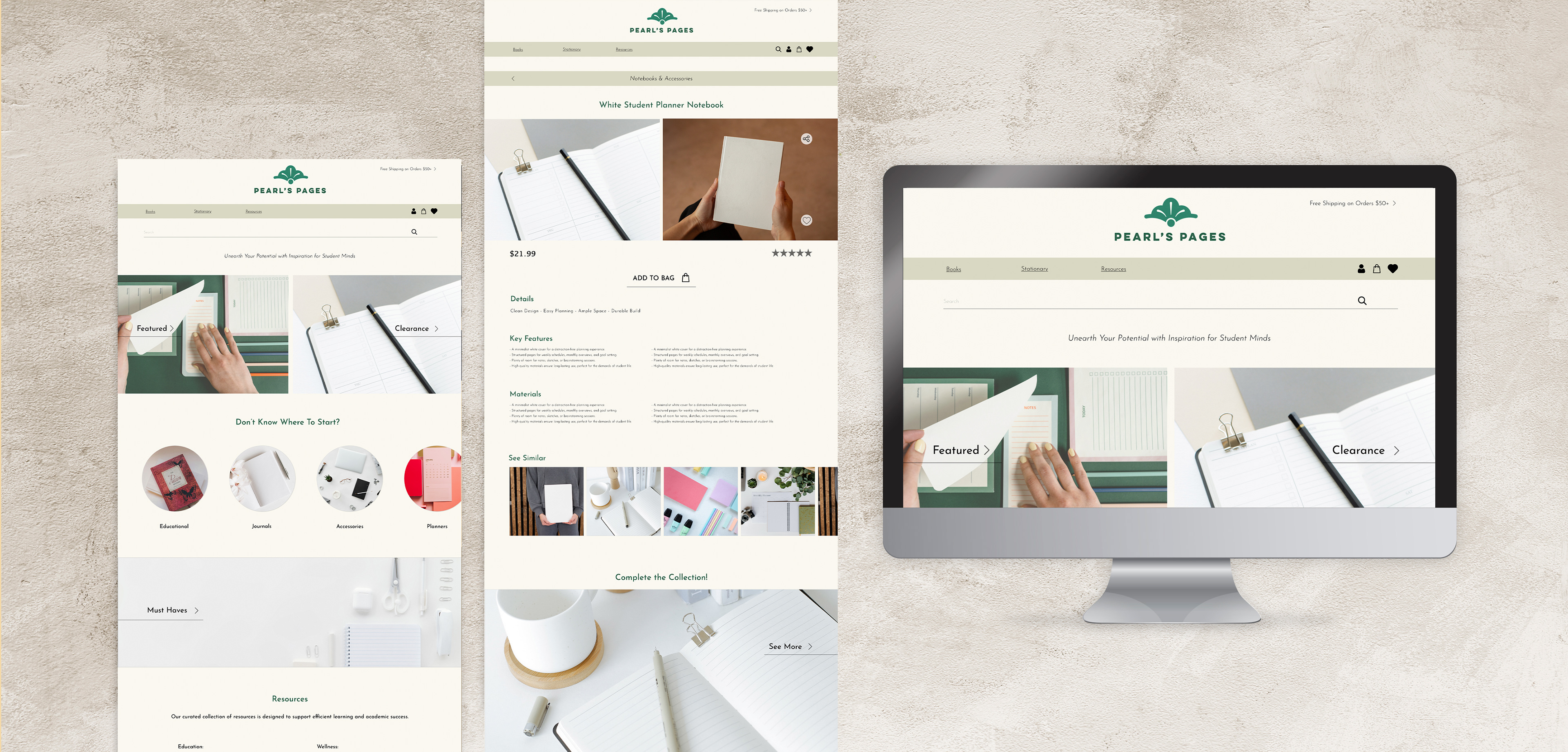 This project was all about creating an easy and enjoyable shopping experience for Pearl’s Pages. A brand designed to help students build productive and inspiring workspaces. With a focus on inclusivity, personal growth, and sustainability, the goal was to make the brand feel approachable and meaningful.